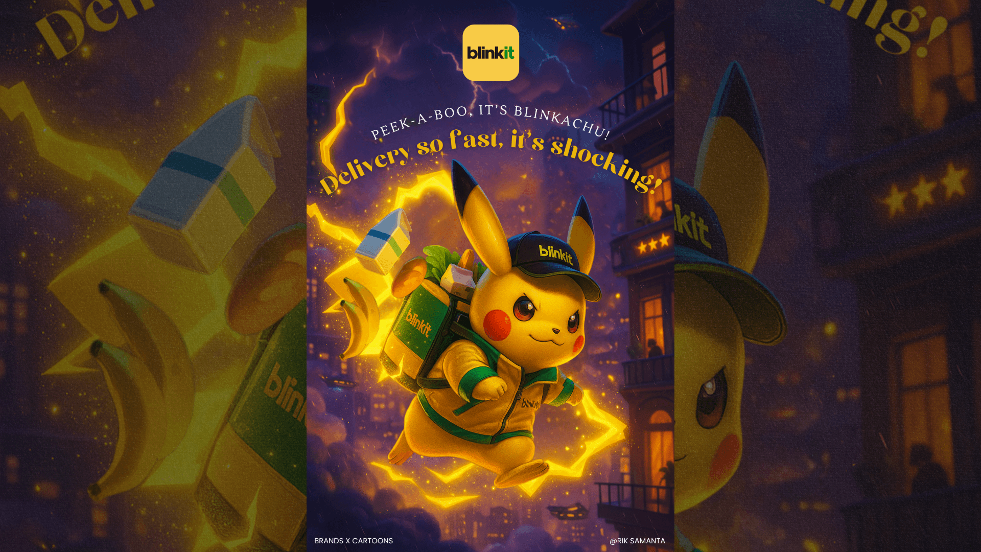 This project is a playful exploration of what happens when nostalgia meets branding. I reimagined beloved cartoon characters as brand ambassadors for some of today’s most-used apps and services. From Shinchan delivering food with Zomato to Pikachu zapping groceries via Blinkit, each visual was crafted to spark a sense of familiarity, fun, and surprise.